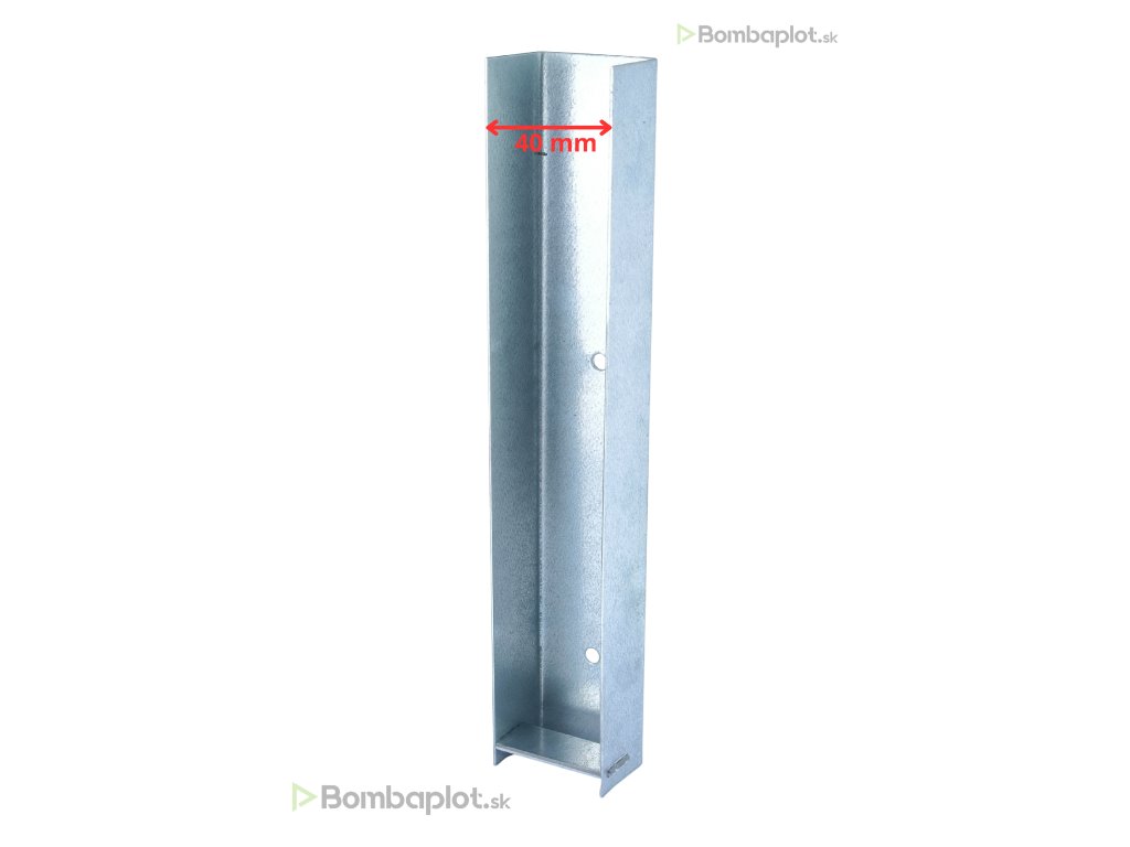 Jednostranný kovový držiak je určený na pevné uchytenie podhrabovej dosky k plotovému stĺpiku.