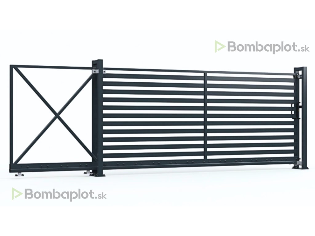 Brána Deluxe je vyrábaná na mieru podľa vašich požiadaviek (šírka prejazdu, výška, smer posuvu).