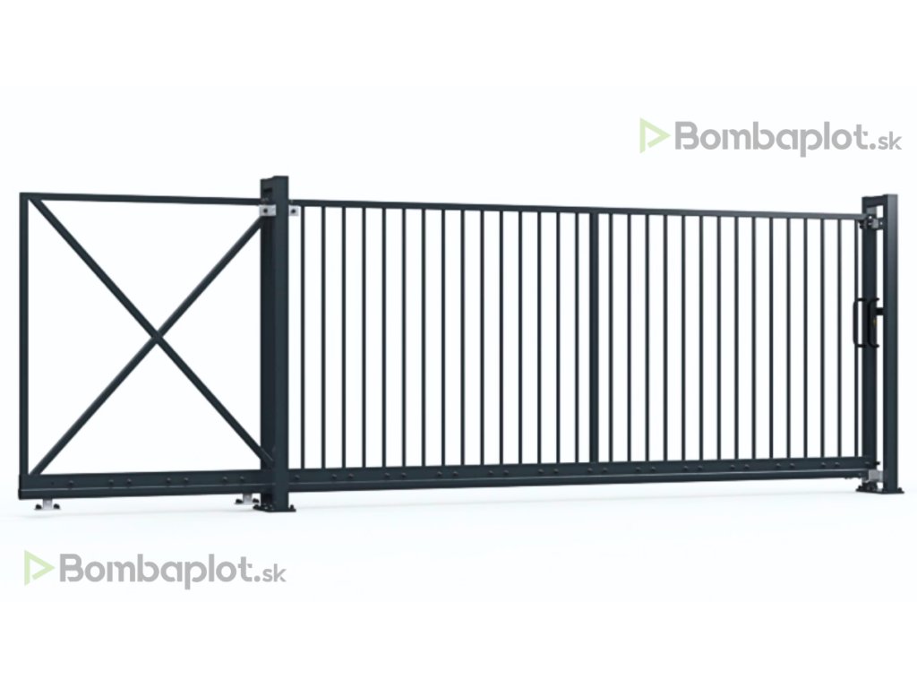 Zvislá tyčová výplň pôsobí vzdušne, elegantne a zároveň poskytuje bezpečné ohraničenie pozemku s dobrým výhľadom. Robustná oceľová konštrukcia je vhodná pre rodinné domy aj firemné areály a je pripravená aj na doplnenie automatického pohonu podľa vašich požiadaviek. Povrchová úprava zabezpečuje dlhú životnosť a odolnosť voči poveternostným vplyvom.